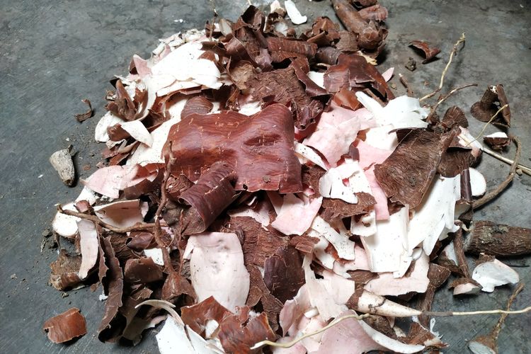 Ilustrasi kulit singkong. Kulit singkong dapat dimanfaatkan sebagai alternatif pakan ternak.