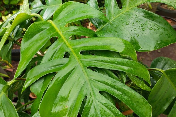Ilustrasi daun ekor naga (Rhaphidophora pinnata Schott).
