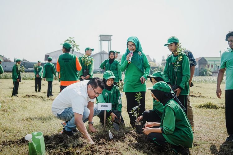 Schneider Indonesia menginisiasi Green Program untuk melakukan penanaman donasi 230 bibit tanaman buah pada lahan seluas 1.140 meter persegi dari total 10.650 meter persegi di lingkungan SMPN 4 kota Kediri, Jawa Timur.(DOK SCHNEIDER ELECTRIC INDONESIA)