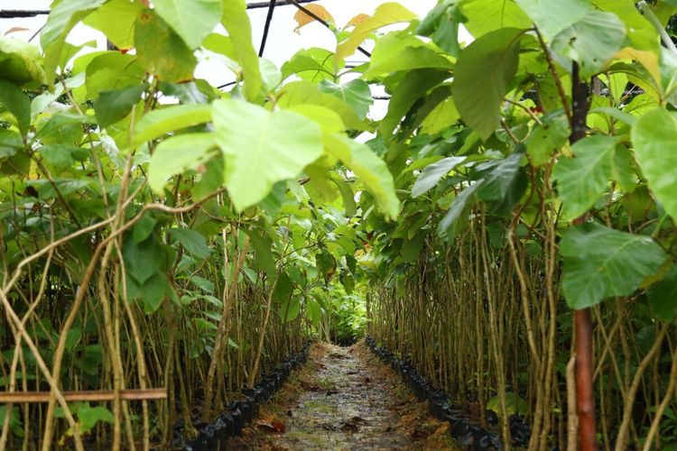 Sebanyak 12.000 bibit pohon jati emas telah disiapkan untuk ditanam di sepanjang jalan dari Laluan Madani hingga kawasan Nongsa, Batam, Kepulauan Riau (Kepri). Saat ini ribuan bibit pohon jati emas itu masih terawat dengan baik dan tidak ada yang mati di kebun BP Batam, kawasan Marina.(KOMPAS.COM/HADI MAULANA)