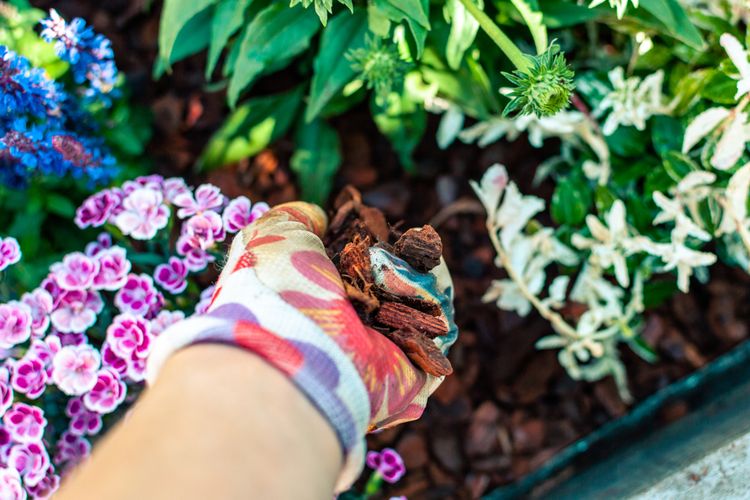 Ilustrasi memberikan mulsa organik pada tanaman.