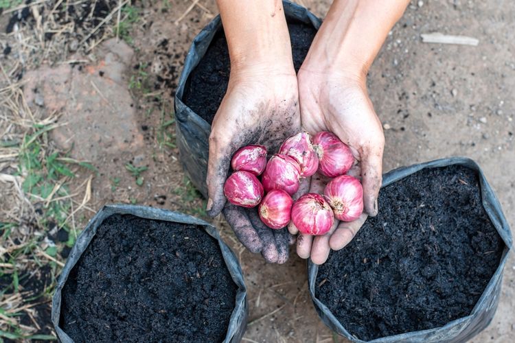 Ilustrasi menanam bawang merah di polybag. (SHUTTERSTOCK/ANGIN HIQARU87)