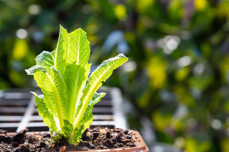 Ilustrasi menanam selada di pot.